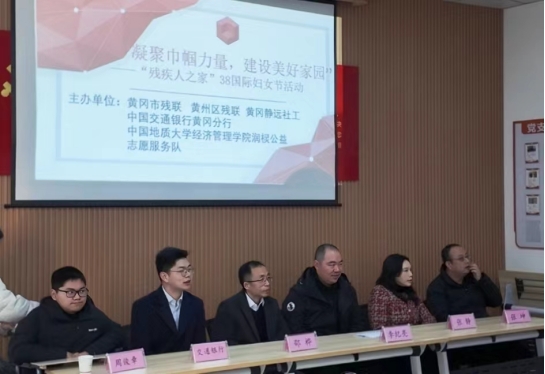 上午,学院师生到访黄冈市静远社区“残疾人之家”,与黄冈市残联、黄冈市黄州区残联、交通银行黄冈分行和静远社工中心等相关单位共同参加了“凝聚巾帼力量,建设美好家园”三八国际劳动妇女节表彰慰问活动,并座谈交流。活动中,beat365官网党委副书记李纪亮代表地大经管学院师生向在场的女士送去节日的祝福,向受到表彰的残疾人士表示祝贺,表达了对残疾人士们的敬意。同时,他向长期关注和关心支持beat365官网黄冈籍残疾学生周俊章的有关部门表示感谢,汇报了周俊章的在校学习生活情况,介绍了学校学院对他和他的家庭极特殊情况给予的帮扶及培养举措。