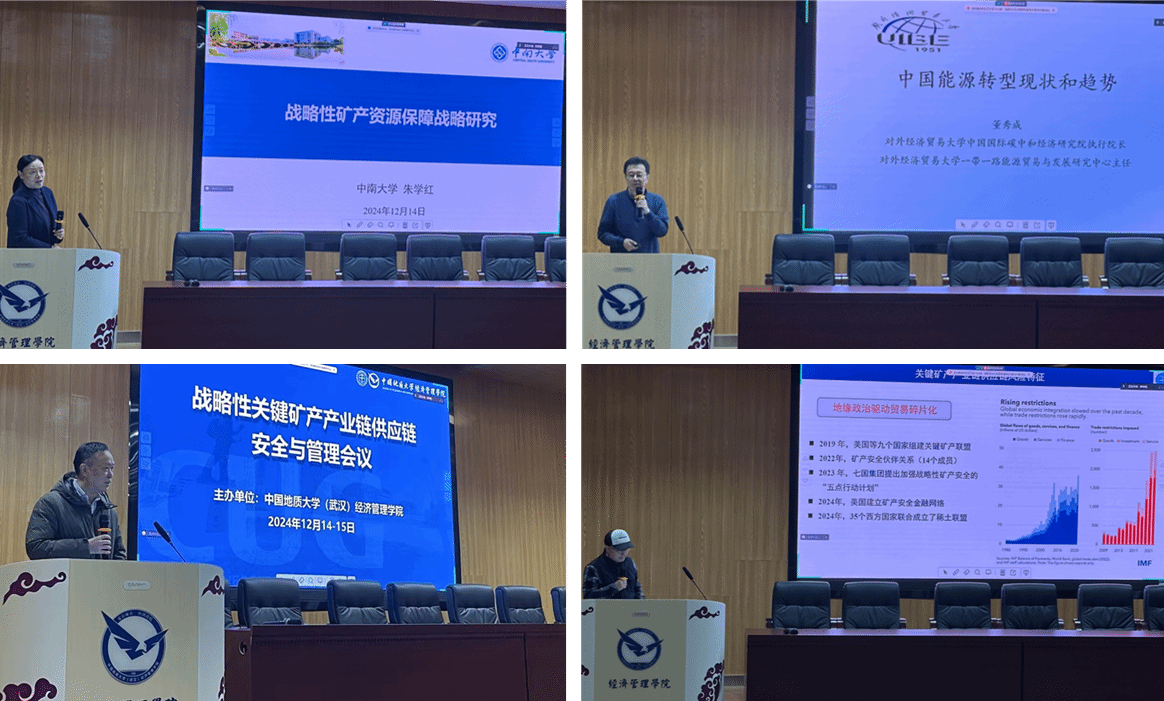 围绕“战略性关键矿产产业链供应链安全与管理”这一核心议题,中南大学原副校长朱学红教授、对外经济贸易大学中国国际碳中和经济研究院执行院长董秀成教授、南昌师范学院副校长徐斌教授、中国地质大学(武汉)经济管理学院徐德义教授、中国地质调查局全球矿产资源战略研究中心副主任李建武研究员、清华大学环境学院曾现来教授、中国自然资源经济研究院矿产资源经济研究所所长陈甲斌研究员、中国地质大学(北京)自然资源研究院副院长葛建平教授、中国地质大学(北京)经济管理学院李华姣教授等15位专家作了精彩的主旨报告。他们分别就战略性矿产资源保障战略、中国能源转型现状与趋势、关键金属矿产贸易网络与韧性、关键矿产产业链供应链风险、关键金属矿产可持续性与国家安全等前沿问题展开深入研讨,报告内容高屋建瓴、信息量丰富,展现了最新的学术研究成果和政策思考。
