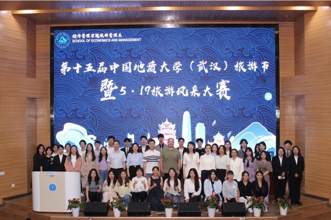 5月15日,由中国地质大学(武汉)大学生社团联合会、经济管理学院和文化遗产与自然遗产湖北省社科普及基地主办,中国地质大学(武汉)自游者俱乐部承办的第十五届中国地质大学(武汉)旅游节暨5·19旅游风采大赛在未来城校区经管学院二楼报告厅成功举办。经济管理学院党委副书记李纪亮,学工组张弛老师及旅游管理系教师出席活动。李纪亮书记致辞,旅游管理系主任李会琴教授宣布比赛开始。