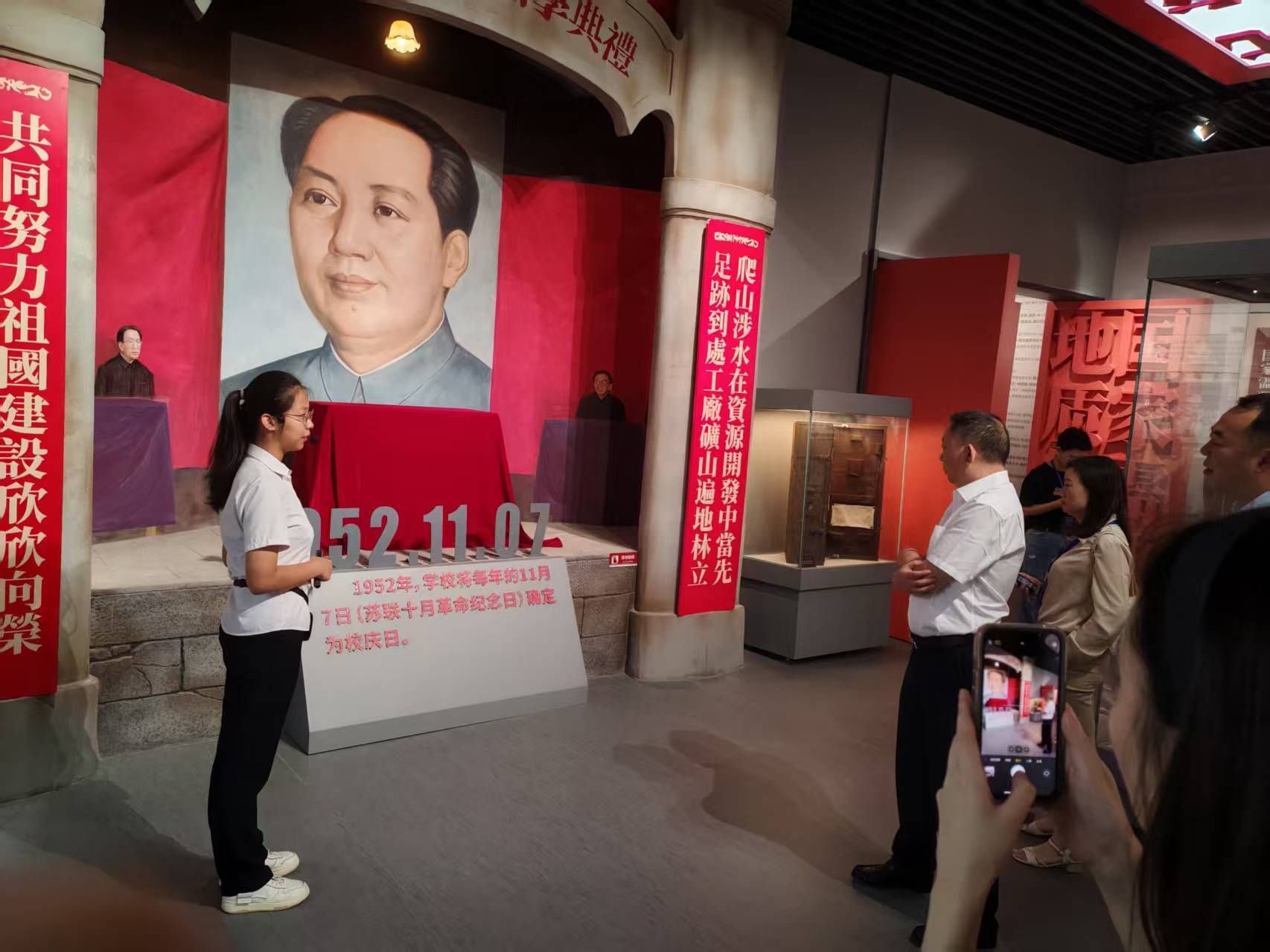 上午9时30分,体验营首站走进中国地质大学(武汉)南望山校区校史馆。讲解员通过历史照片、文献实物与数字化展陈,系统梳理了学校从1952年北京地质学院创立到迁址武汉、更名为中国地质大学(武汉)的七十余载发展历程,展示了学校在地质勘探、资源环境、珠宝科技等领域的卓越贡献,以及“艰苦朴素,求真务实”校训背后的精神传承。参观结束后,体验营转战未来城校区,参观了经济管理学院大楼及智慧教室,实地感受了学院现代化的教学环境。