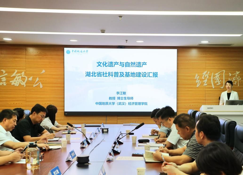 6月27日上午,省社科联党组成员、秘书长许巍一行莅临beat365官网文化遗产与自然遗产湖北省社科普及基地开展走访调研。省社科联科普部主任徐维洲、学院党委书记杨昌锐、校科发院副院长兼经管学院副院长郭锐、校科发院人文社科办公室主任姜珊,学院李记亮副书记、郭海湘教授、团委书记努尔夏提·居勒提、基地负责人李江敏教授以及基地代表刘晶晶、肖拥军、柴海燕参加调研座谈。