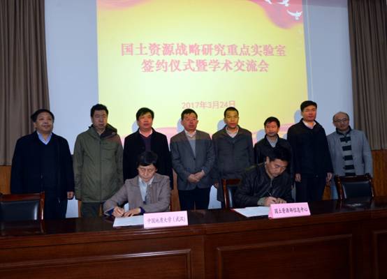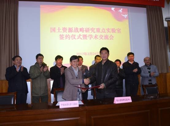 3月24日上午8:00,国土资源部信息中心与中国地质大学(武汉),在中国地质大学(武汉)八角楼学术报告厅顺利签署共建国土资源战略研究重点实验室合作协议,并举行学术交流会。 校党委副书记朱勤文教授致欢迎辞,她说到与我校合作共建国土资源战略研究重点实验室是国土资源部对我校的信任,表明我校相关学科在这方面具有一定优势和特色,希望相关学科以此为契机,互为交叉,为特色行业领域提供智库支持,也忠心的希望双方的合作能够实现1+1大于2。