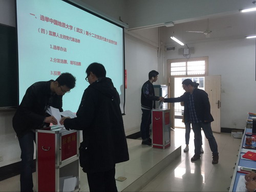 beat365官网于2017年11月2日下午在综合楼204召开了教工全体党员和学生支部书记参加的党员大会。本次党员大会分两个环节进行,第一个环节是选举经管学院出席学校第十二次党员大会的党代表。根据《关于经济管理学院党委出席中共中国地质大学(武汉)第十二次党员代表大会代表候选人预备人选的批复》文件精神,在充分发扬民主,广泛酝酿讨论的基础上,采用差额选举的办法,选举产生了经济管理学院出席中共中国地质大学(武汉)第十二次党员代表大会代表11位同志。