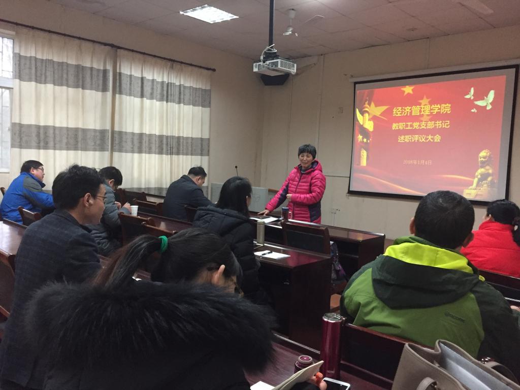 (通讯员 海鸣 赵家玮)为了贯彻落实《中共教育部党组关于加强新形势下高校教师党支部建设的意见》和《普通高等学校学生党建工作标准》精神,按照学校党委的要求开展党支部书记述职评议考核工作,进一步压实支部书记抓党建的责任,经济管理学院分别在2017年12月29日和2018年1月4日在召开了党支部书记述职评议大会。学生党支部书记和教职工党支部书记分别参加了会议。