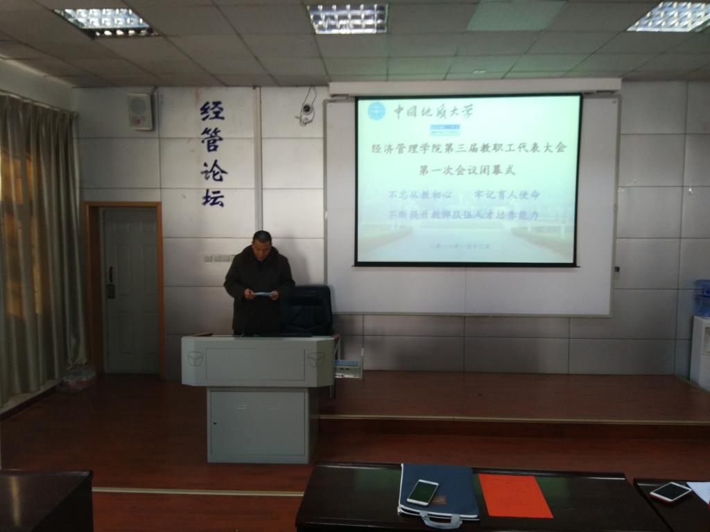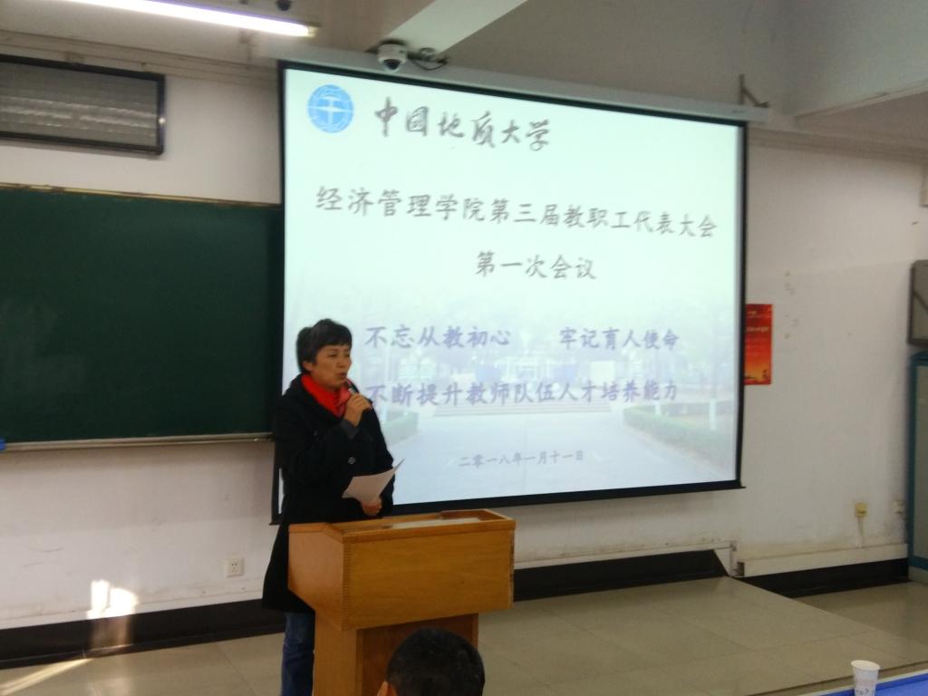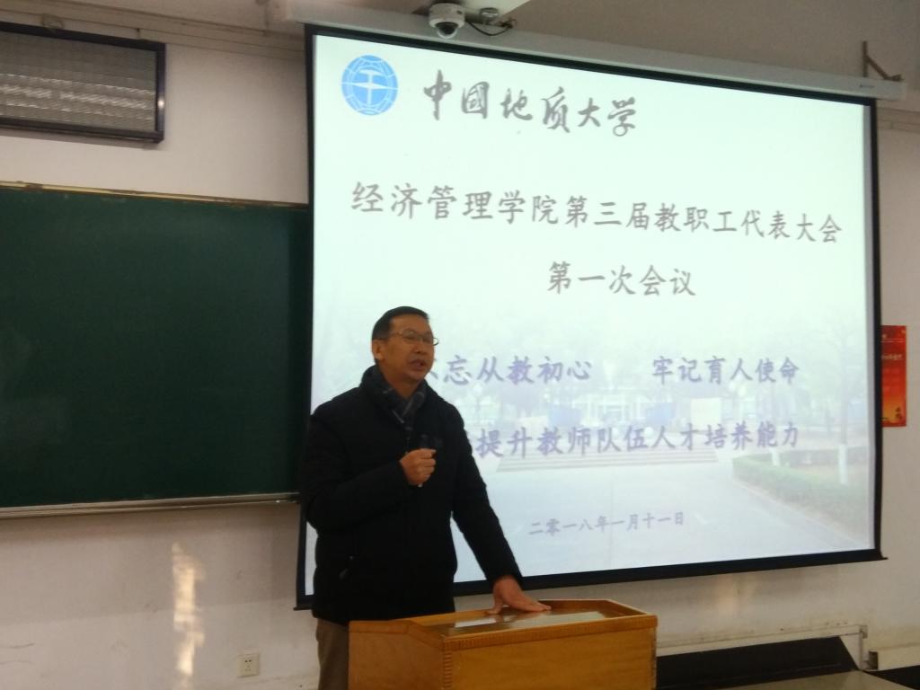 (通讯员周玲)2018年1月11日至12日,经济管理学院第三届教职工代表大会第一次会议召开。本次大会以“不忘从教初心,牢记育人使命,不断提升教师队伍人才培养能力”为主题。校党委副书记、纪委书记成金华同志、校工会副主席高复阳同志出席会议。