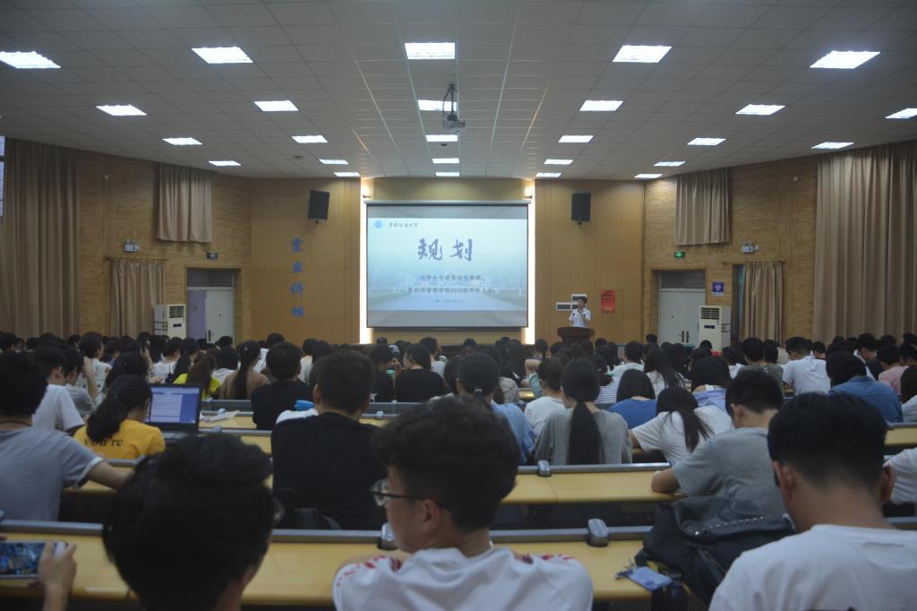 2018年7月7日,经济管理学院生涯规划先修课暨2016级本科生年级大会在教三楼109召开,经管学院党委副书记沈波老师、16级辅导员田昆老师、兼职辅导员陈习良老师出席大会,16级全体学生参会。