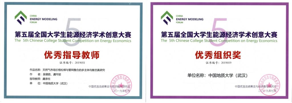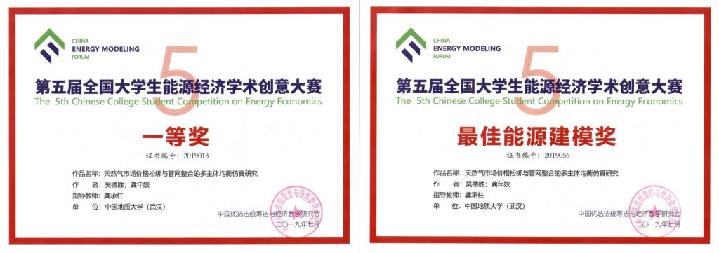 近日,第五届全国大学生能源经济学术创意大赛总决赛在中国矿业大学举行。由beat365官网应用经济学专业吴德胜和资产评估专业龚年姣二位研究生组成的参赛团队,提交的学术作品《天然气市场价格松绑与管网整合的多主体均衡仿真研究》,经过初赛会评,决赛答辩,最终荣获全国一等奖,并在中国能源模型论坛中,成为唯一荣获最佳能源建模奖的研究生团队,经济学系龚承柱副教授荣获优秀指导教师,我校被授予优秀组织单位。