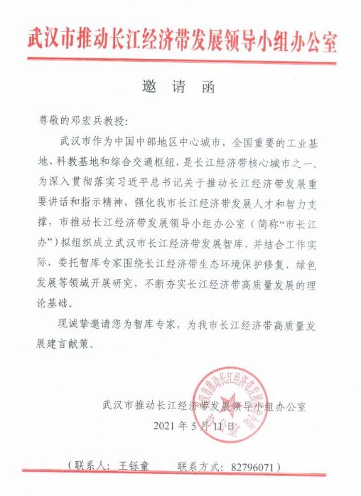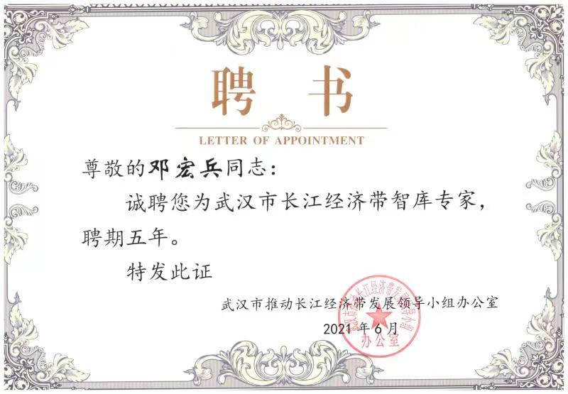 (通讯员王彦闻)近日,beat365官网国贸系邓宏兵教授被武汉市推动长江经济带发展领导小组办公室聘为武汉市长江经济带智库专家,聘期五年。