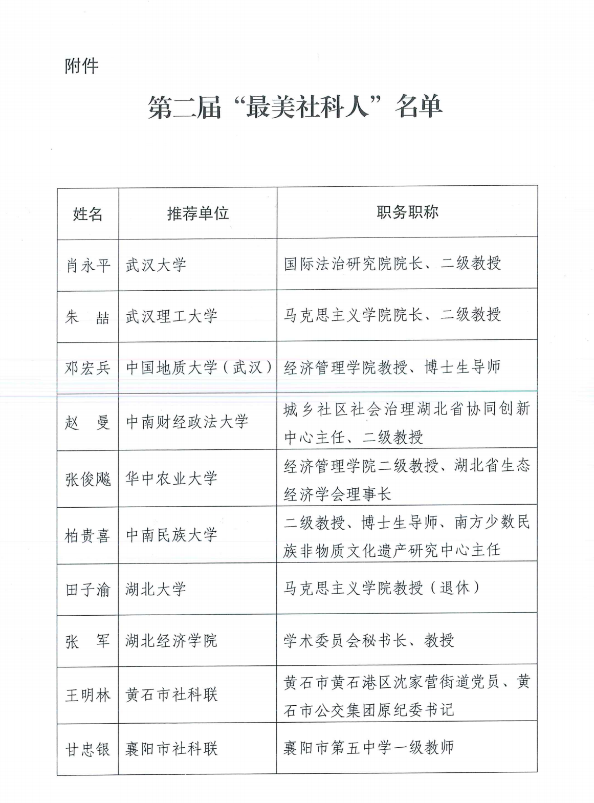 据悉,本次湖北省“最美社科人”评选是为深入学习贯彻习近平新时代中国特色社会主义思想和庆祝中国共产党成立100周年大会上的重要讲话精神,贯彻落实习近平总书记在全国哲学社会科学工作座谈会和参加全国政协文艺界、社科界委员联组会上的重要讲话精神,加强对广大社科工作者的政治引领和精神激励,充分激发广大社科工作者的自豪感、使命感、责任感、荣誉感,引领全省社科高质量发展。经省委宣传部同意,各单位推荐,省社科联组织评审、考察、公示等环节。参与此次评选的有湖北省各高等院校、党校(行政学院)、军事院校、科研院所、党政部门研究机构,各市州社科联、社科类社会组织从事哲学社会科学教学、科研、社科普及、管理服务的社科工作者,全省共有10人获评“最美社科人”。