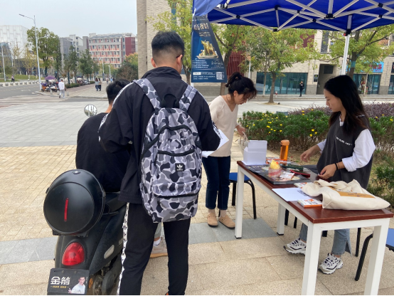 当日中午,经济管理学院研究生会的同学在地大未来城校区学一食堂开展线下宣传,工作人员耐心向前来咨询的同学讲解大赛背景和举办目的,并详细讲解了本届大赛的组织模式、奖项设置、比赛规则及参赛建议等等。