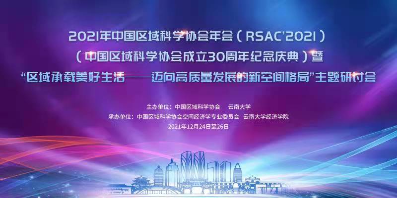 (通讯员 郑坤)2021年12月24-26日,由中国区域科学协会、云南大学主办,中国区域科学协会空间经济学专业委员会、云南大学经济学院、北京大学首都发展研究院承办的2021年中国区域科学协会年会暨“区域承载美好生活——迈向高质量发展的新空间格局”主题研讨会在云南大学召开(线上)。共计1200余人次参加了此次会议。我校区域经济团队邓宏兵、白永亮教授、易明教授、胡守庚教授、洪水峰副教授等30余名师生参加了本次会议。邓宏兵教授参加了“区域承载美好生活”高端对话,他围绕共同富裕,从疫情防控与高质量发展两个维度阐述了区域发展中如何实现美好生活的愿景,并希望未来区域科学的相关专家学者能够共同助力推动区域高质量发展,实现人民对美好生活的向往。邓宏兵教授作为点评人参加并点评了分论坛二“低碳背景下区域创新发展模式”相关报告,博士生郑坤等同学在分论坛上做了发言。