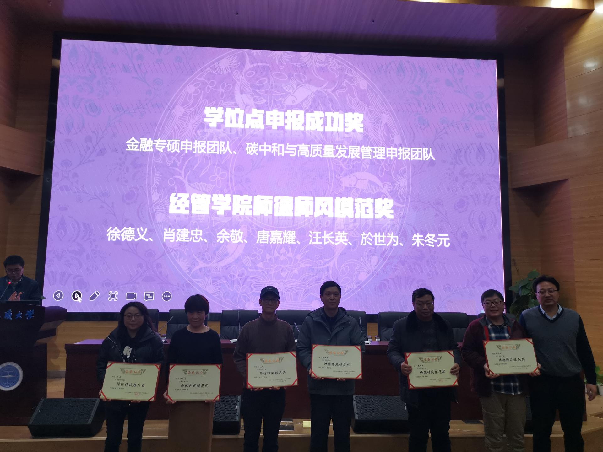学院领导对突出贡献奖、学位点申报成功奖、经济管理学院师德师风模范奖、党史学习教育先进集体、经管学院优秀班主任奖、体育运动集体奖、学院工会积极分子等集体和优秀教师个人予以了表彰。