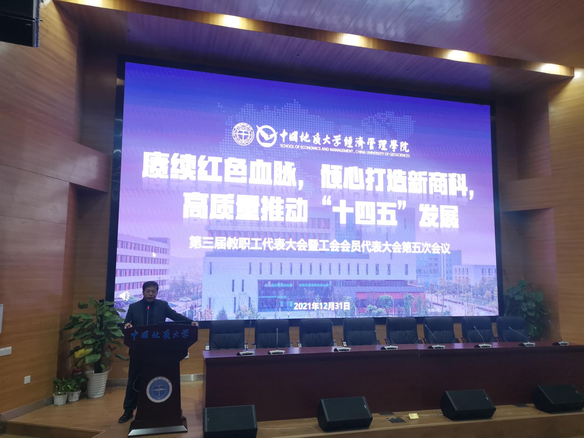 (通讯员倪琳,照片提供努尔夏提) 2021年12月31日上午,经济管理学院在未来城科教七楼二层报告厅隆重召开了第三届教职工代表大会暨工会会员代表大会第五次会议。本次大会的主题是“赓续红色血脉,倾心打造新商科,高质量推动“十四五”发展”。