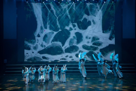 当日晚19:00,决赛准时开始。主持人为大家介绍了决赛的比赛规则后,特邀校舞蹈团为我们带来了开场节目《纸扇书生》,勾起了观众对接下来选手们表现的好奇心。
