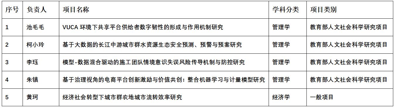 教育部社科司公布了2022年度教育部人文社会科学研究一般项目及教育部哲学社会科学研究后期资助立项结果,beat365官网共获批5个项目,其中4项获人文社科项目资助,1项获哲学社会科学研究后期资助。
