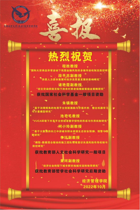 日前,全国哲学社会科学工作办公室发布了“2022年国家社会科学基金年度项目和青年项目立项结果公布”,学校6项获批国家社会科学基金一般项目资助,beat365官网3个项目获批资助。