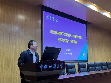 华中农业大学经济管理学院院长李谷成教授作了题为《新文科背景下经管类人才培养模式的改革与实践:华农案例》的报告,新时代文科建设要主动拥抱科技革命和产业变革的机遇和挑战,实现哲学社会科学与新科技革命(现代信息技术)的交叉融合。围绕一个中心,以学生为中心,夯实现代经济学与管理学的基础理论和基本方法,培养具有强烈的家国情怀和社会责任感的复合型高素质专门人才。抓好两个引领,以党建为引领铸魂逐梦,以示范为引领选树典型,开设达尊班、张之洞班、本禹班等特色班级。打造三个品牌,即打造有温度的本禹志愿服务品牌,打造有内涵的达尊系列学术品牌,打造有新意的创新创业工作品牌。着力四个建设。对标一流,着力扎实推进一流专业建设;严肃学风,做实教务与学工的联动,构建和谐师生关系;教书育人,着力多措并举育人能力建设,以教研教改为导向,推进产科教融合,发布《经济管理学院课程思政工作室建设方案》,有组织有计划地进行“课程思政”建设;团队发力,着力激发团队原创活力建设,组建57个专业基础课和专业核心课课程团队。构建五大体系。注重知识复合,建设经济、管理与“农业+”复合的专业课程体系;做实“三个结合”,建设入脑入心入行的社会责任感养成教育体系;搭建实训平台,建设“教-学-练”三位一体的学生自主学习能力培养体系;强化创新实践,建设“一强三融”的学生实践创新能力培养体系;推进国际合作,建设“引进来”“走出去”并重的全球胜任能力提升体系。