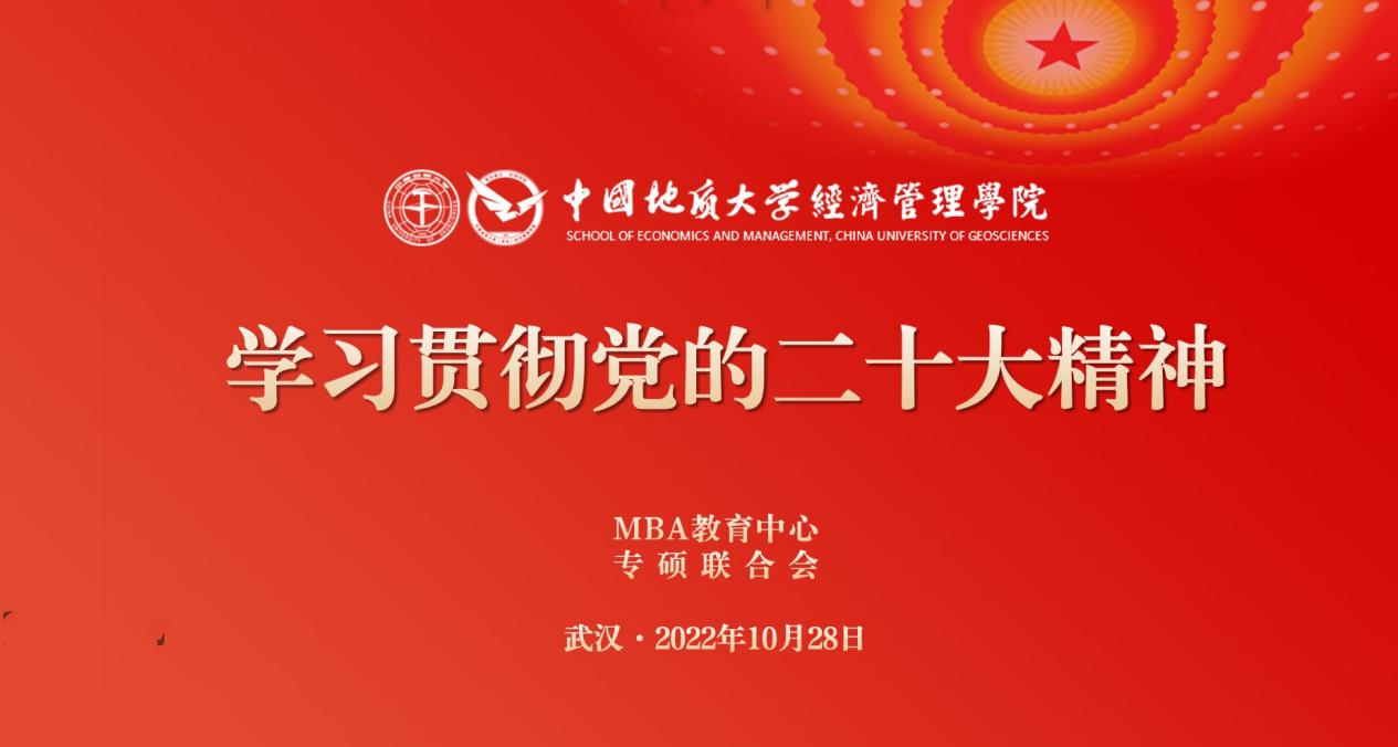 历史总是在继往开来中创造,事业总是在接续奋斗中推进。2022年10月28日,中国地质大学(武汉)经济管理学院专硕联合会组织部分MBA学生深入学习党的二十大精神,进一步凝聚思想共识、汇聚奋进力量,接续奋斗走好新时代长征路。