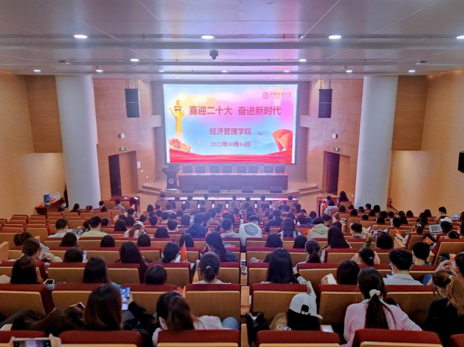 2022年10月16日上午10时,中国共产党第二十次全国代表大会在北京隆重开幕。经济管理学院组织全体师生分别在未来城和南望山校区报告厅、教室等多个会场同步集中收看大会直播,认真学习聆听习近平总书记代表十九届中央委员会向大会所作的报告。学院领导带头,各师生党支部、团学研组织和各班级学生通过多种方式深入学习党的二十大报告,展开热学热议。