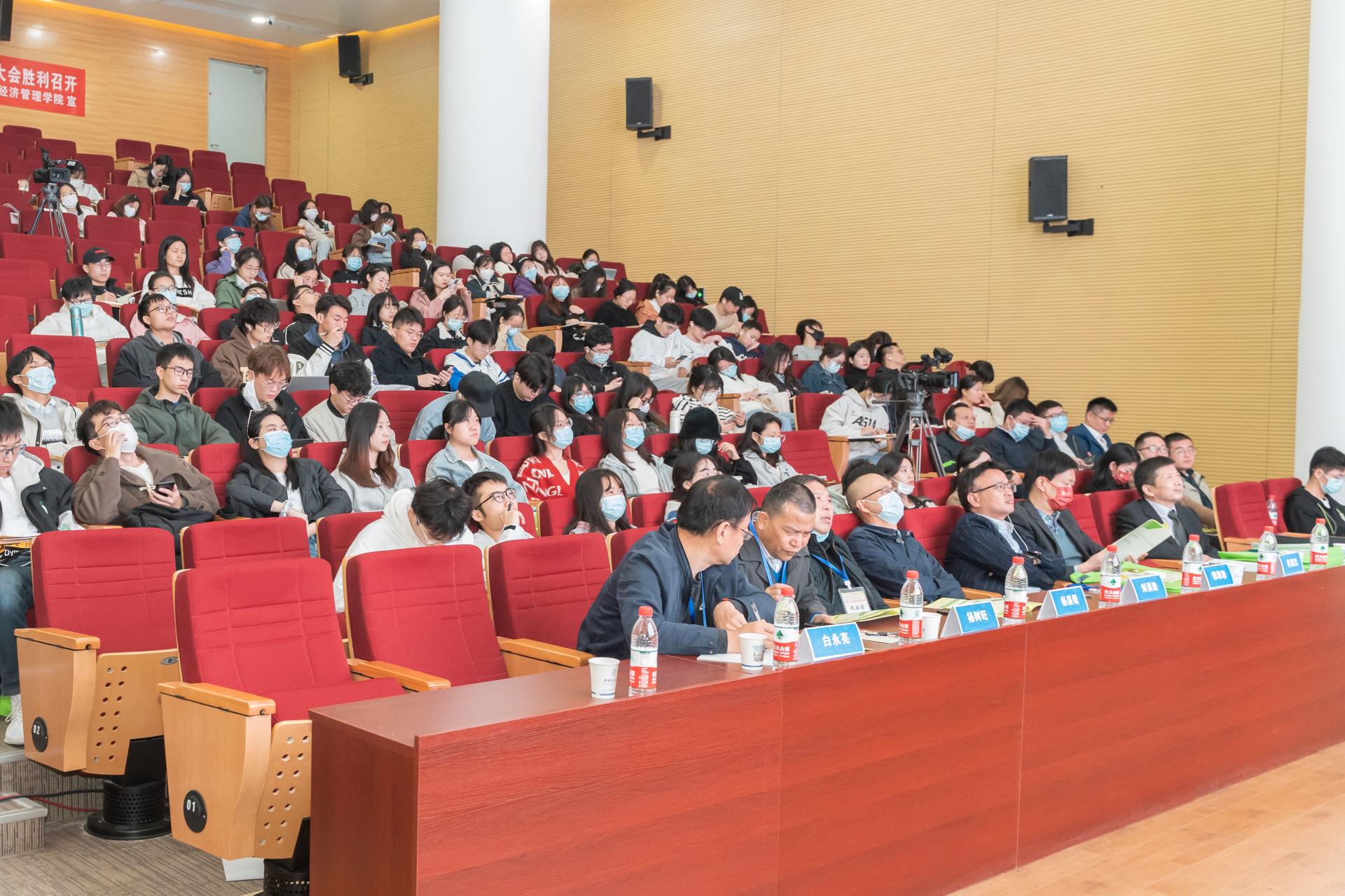 经济管理学院党委书记杨昌锐、院长杨树旺、副院长肖建忠、副院长程胜,学校人文社科处处长郭海湘,金融与贸易系主任白永亮以及经济管理学院300多位师生在线下出席了年会。年会设置了八个平行分论坛,参会者围绕ESG、绿色信贷与绿色保险、绿色基金与绿色证券、产业转型与低碳市场、环境规制与环境信息、碳排放绩效、绿色效应等主题开展了深入的学术探索与交流。通过切磋和碰撞,参会者获益匪浅。之后,年会还举办了主编论坛,邀请包括国际权威刊物Nature在内的七家刊物的主编或编辑介绍了自己的刊物和投稿要求。精彩的演讲内容以及主持人幽默的话语,赢得了阵阵掌声,将年会推向一个又一个高潮。