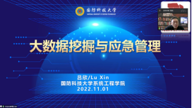 11月1日上午10:00,吕欣教授为我校师生做了题为“大数据挖掘与应急管理”的学术报告。吕欣教授从大数据、复杂网络、人类行为及管理决策四个角度入手,结合海地大地震、日本大地震、孟加拉湾台风及新冠疫情等数个具体实例,给在场师生细致地展现了其团队的研究成果。其中,一些研究成果使用的手机定位数据和推特数据以及采用的一些独特的指标,例如使用经济价值距离取代传统的物理距离和移动轨迹熵等为在场师生的科研工作带来了有益启发。本次讲座共吸引了60余位师生参加,会后同学们积极提问,吕欣教授均进行了详细解答。