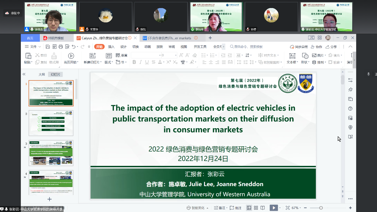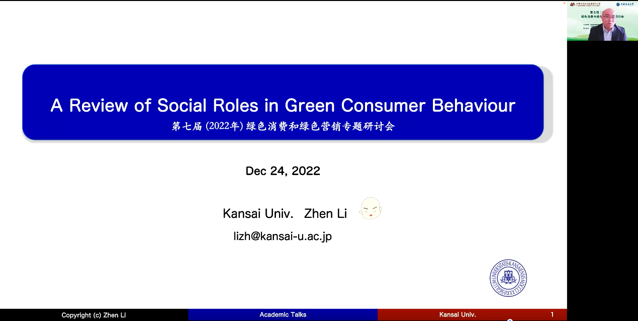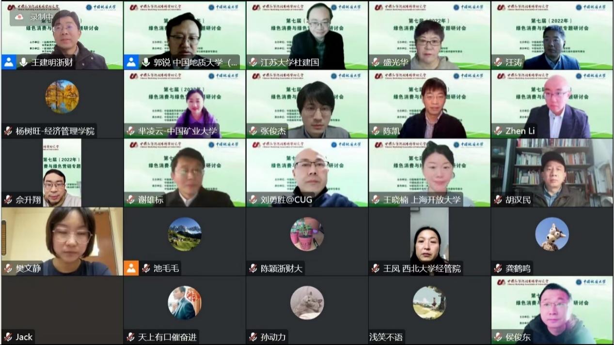 为交流思想,推进绿色发展,2022年12月24日,“2022年(第七届)绿色消费与绿色营销专题研讨会”在湖北武汉成功举办。本次会议由中国高等院校市场学研究会、中国地质大学(武汉)联合主办,中国地质大学(武汉)经济管理学院、中国高等院校市场学研究会绿色消费与绿色营销专委会承办。本次会议包含特邀嘉宾主旨演讲、以学术交流为主题的四大平行分论坛,与实践部门对话等重要环节。来自高等院校、科研机构的600多名专家学者师生代表齐聚云端,共襄盛会,集思广益,就当前绿色消费与绿色营销的重要理论和现实问题展开深入探讨与交流。