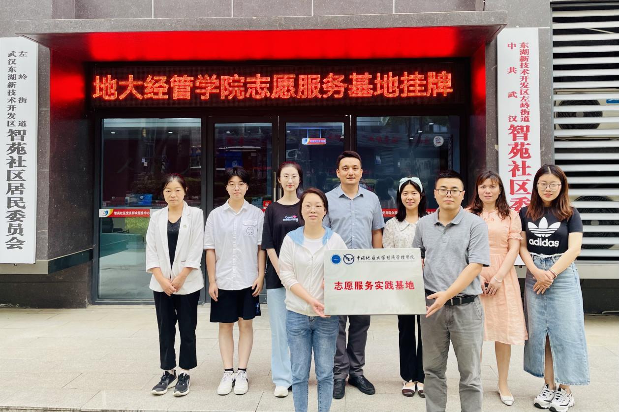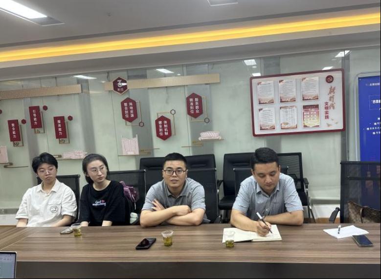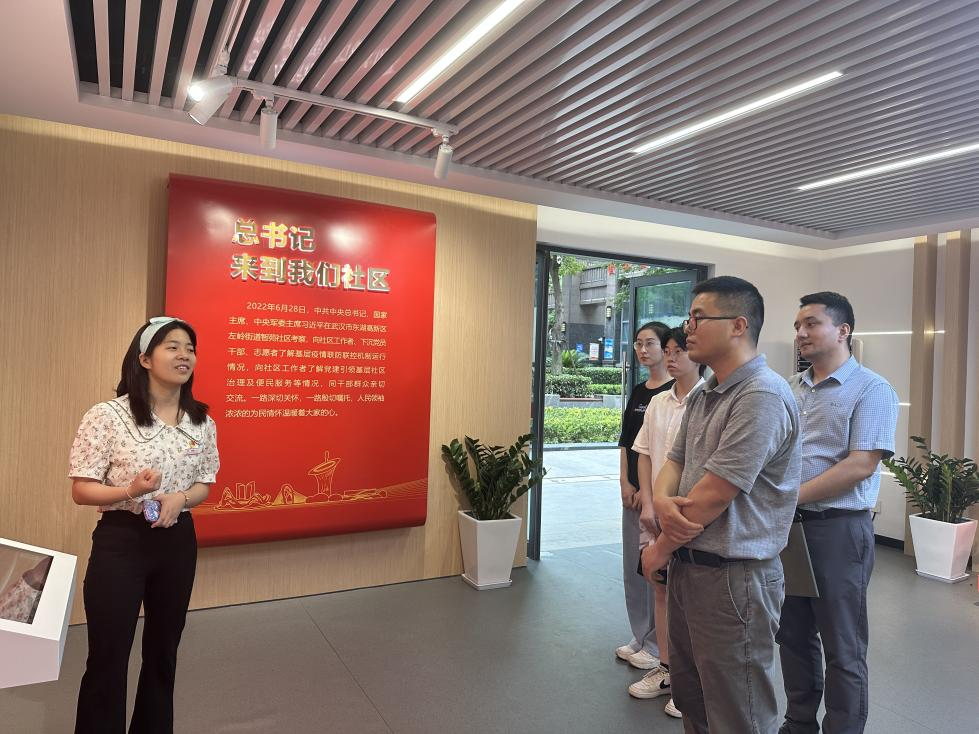 (通讯员 刘佳、李宜璋)6月5日下午,经济管理学院党委副书记李少杰、团委书记努尔夏提·居勒提带领团学代表、全国“两弹一星”宣讲团成员代表走访左岭街道智苑社区,深入学习习近平总书记2022年6月28日在武汉考察时的重要讲话精神,推进学习贯彻习近平新时代中国特色社会主义思想主题教育走深走实。进一步强化学院与智苑社区地合作联系,引导学生走进基层一线,弘扬志愿奉献精神。智苑社区团支部书记金成静,党建专员李梦蝶,光谷壹新社工项目主管覃敏姣、熊南叶及社区干事参加座谈和“志愿服务实践基地”挂牌仪式。
