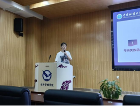 最后,由李奇明老师总结发言,阐述了统计系素来崇尚升学就业经验分享的优良传统,以及统计学这一专业的学科优势。他强调,19级中既有保研、考研和留学申请顺利上岸的同学,但也有经历过考研初试、复试失败的落水者。他们有些后续在自己的努力下调剂成功、圆梦春招、考公上岸,有些虽暂未落实去向但仍在申请留学、二战、考公和找工作的最前线拼搏着。这代表了地大统计人顽强拼搏、不向失败低头的勇气和决心。请全体统计人相信,胜利不会像山顶上的蒲公英一样触手可得,但面对人生中的艰难和风浪,保持坚定的信念和毅力,就能超越困难,取得成功。