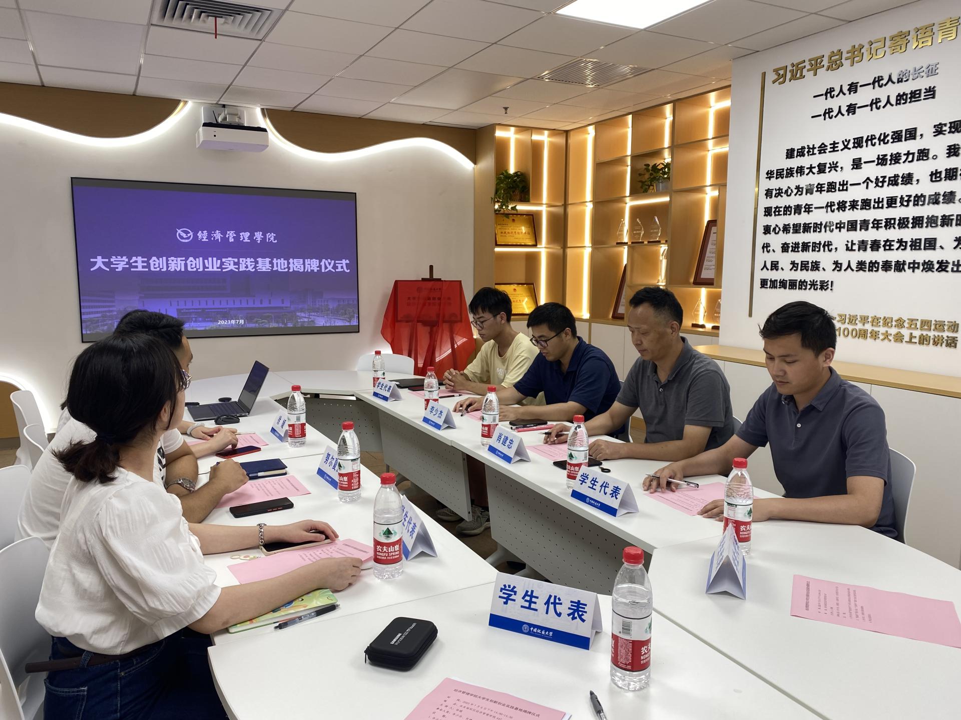 (通讯员 徐媛)2023年7月6日下午,经济管理学院大学生创新创业实践基地揭牌仪式在未来城校区科七楼447举行。学院党委副书记李少杰、副院长肖建忠、团委书记努尔夏提及学生双创团队代表等出席仪式。辅导员徐媛主持仪式。