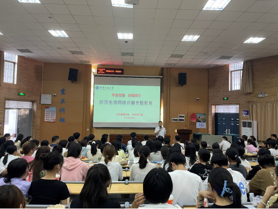 (通讯员 徐媛)9月9日上午,学院在南望山校区教三楼109举办了防诈骗安全教育讲座。本次讲座由学校安全保卫部副部长彭冠军老师主讲,由2023级辅导员徐媛老师主持,经济管理学院2023级全体本科新生参与讲座。