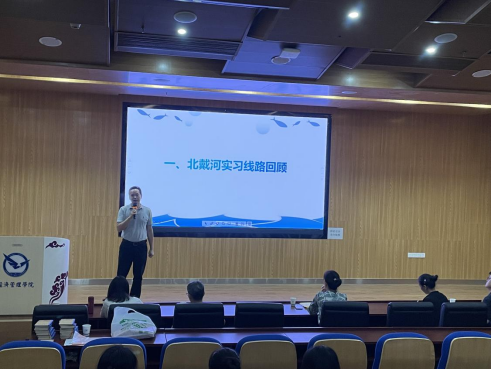 (通讯员 黄珂 李千惠)9月15日上午,旅游管理系在未来城校区经济管理学院一楼报告厅举行了北戴河旅游教学实习总结会暨“一月一系谈”活动。旅游管理系教师、辅导员蔡杨及085211、085221班同学参加了本次活动。活动以“一直在路上”为主题,旨在总结、表彰北戴河旅游教学实习,辅助2021级、2022级学生做好新学年规划,增进专业内部师生交流。活动由旅游管理系副主任黄珂老师主持。