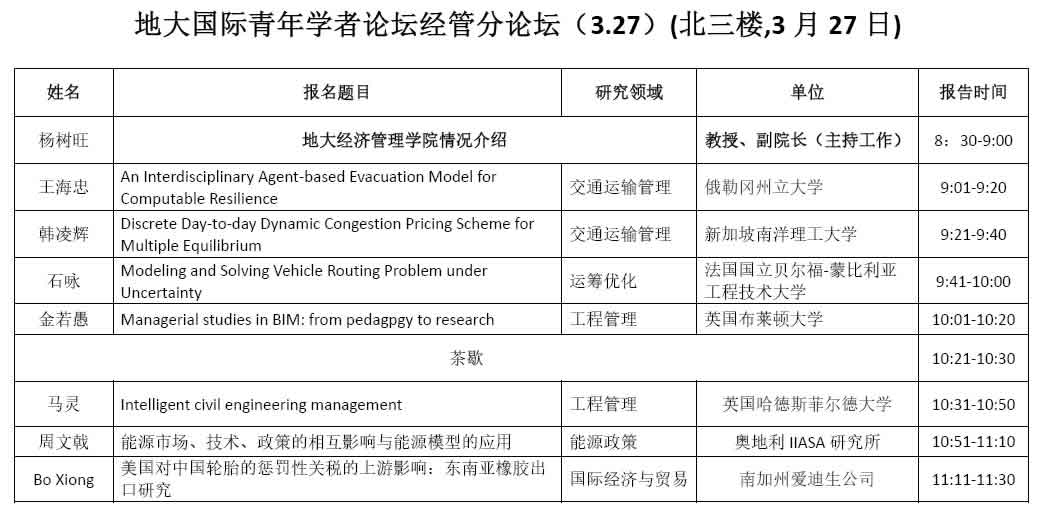 中国地质大学(武汉)第二届“国际青年学者地大论坛”经管分论坛