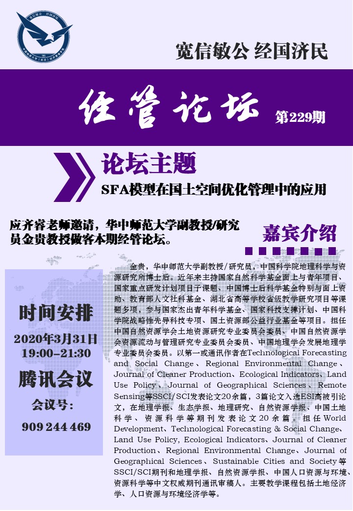 中国地质大学(武汉)经济管理学院 /自然资源数字经济学院 地址:湖北省武汉市东湖新技术开发区锦程街68号电话:027-67883201 邮编:430078ICP备案号:鄂ICP备05003343号