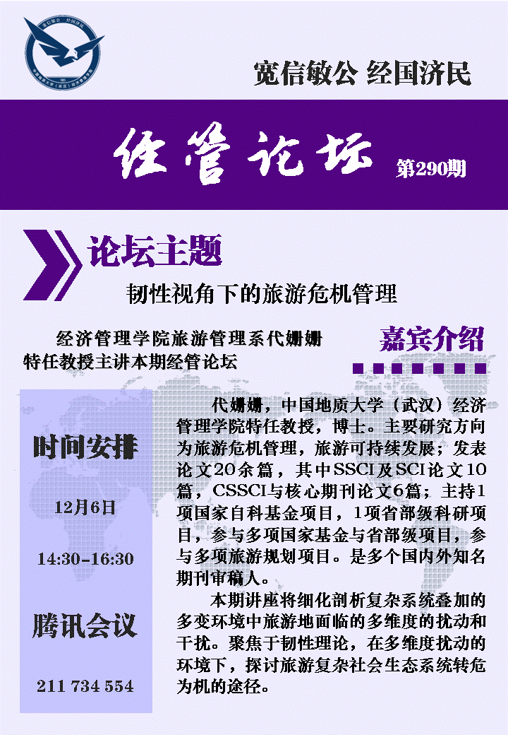 中国地质大学(武汉)经济管理学院 /自然资源数字经济学院 地址:湖北省武汉市东湖新技术开发区锦程街68号电话:027-67883201 邮编:430078ICP备案号:鄂ICP备05003343号