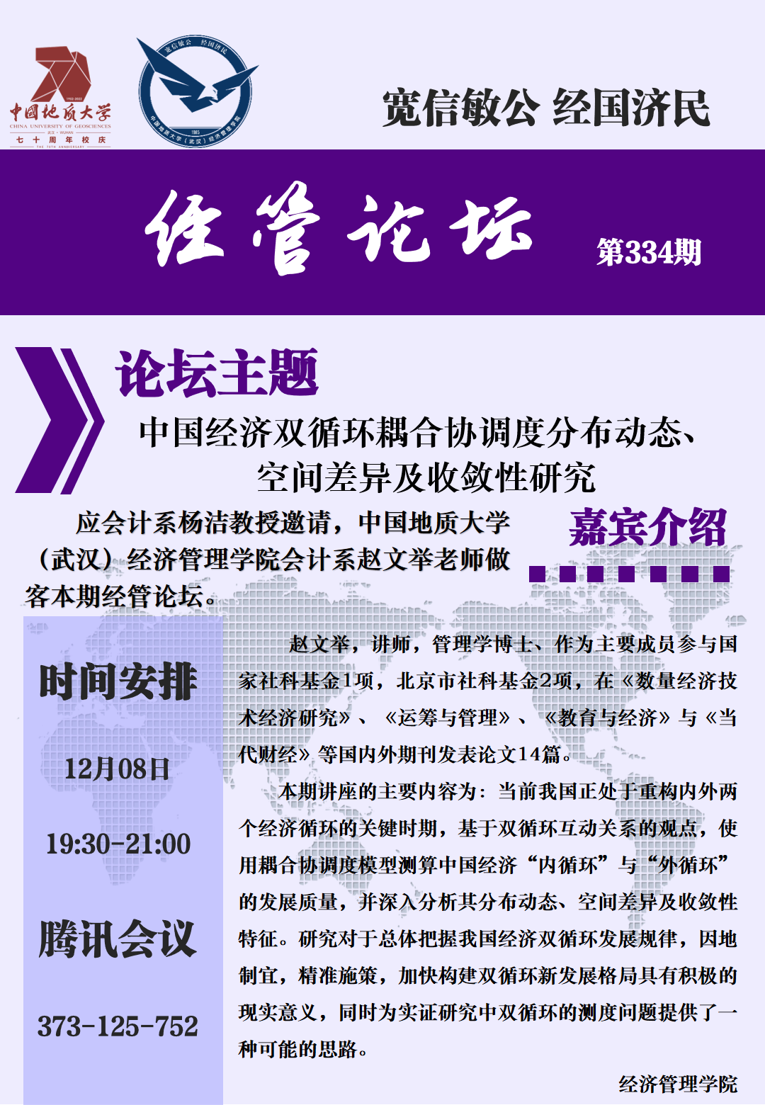 中国地质大学(武汉)经济管理学院 /自然资源数字经济学院 地址:湖北省武汉市东湖新技术开发区锦程街68号电话:027-67883201 邮编:430078ICP备案号:鄂ICP备05003343号