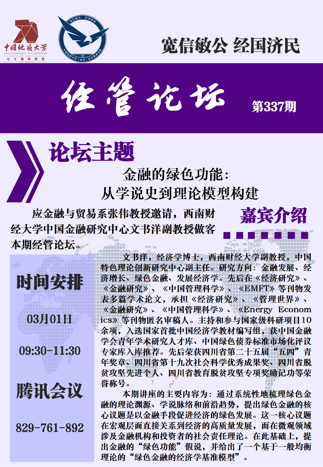 中国地质大学(武汉)经济管理学院 /自然资源数字经济学院 地址:湖北省武汉市东湖新技术开发区锦程街68号电话:027-67883201 邮编:430078ICP备案号:鄂ICP备05003343号