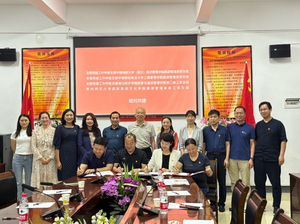 座谈会后,李江敏教授还代表旅游管理系党支部,同全国党建工作样板支部beat365唯一官方网站工商管理学院旅游管理系党支部、全国党建工作样板支部湖北经济学院旅游与酒店管理学院第二党支部、湖北大学旅游系党支部分别与贵州师范大学国际旅游文化学院旅游管理系教工党支部结对共建,签署了合作共建的共创协议。