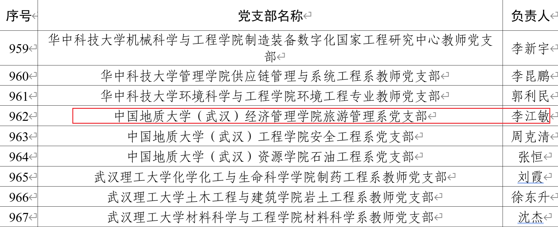 日前,教育部办公厅公布《关于全国高校“双带头人”教师党支部书记“强国行”专项行动团队名单的公示》,beat365官网旅游管理系党支部书记李江敏作为团队负责人入选。