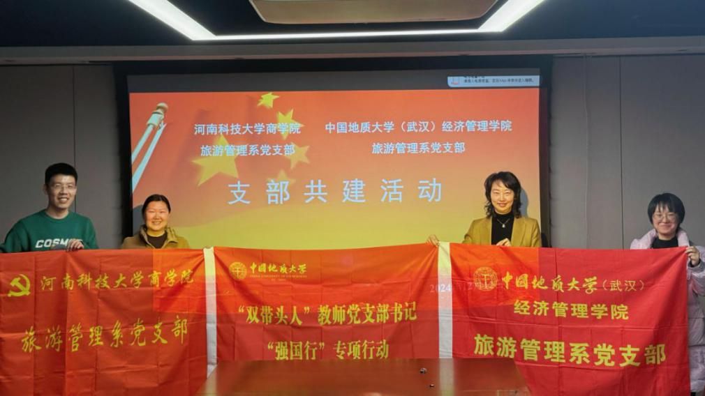 (通讯员 张佳泋)为积极推进文化强国建设,实现基层党组织党建工作和学科专业发展发展互促,中国地质大学(武汉)经济管理学院旅游管理系党支部书记、全国高校“双带头人”教师党支部书记“强国行”专项行动团队负责人李江敏教授于12月12日受邀前往河南洛阳,与河南科技大学商学院旅游管理系党支部开展支部共建活动。