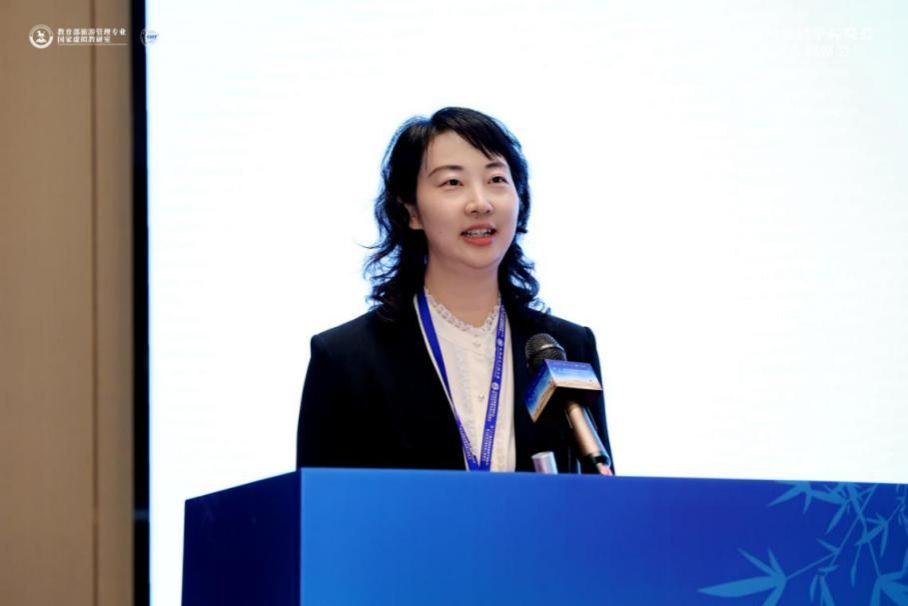 李江敏教授以文旅场景思政育人的机遇挑战为背景,围绕《知行合一 以文化人 文旅场景思政育人路径》作主题演讲,从党建引领、专业建设、平台支持、教学实践和成效互哺五个方面,分享了中国地质大学(武汉)关于文旅场景思政育人的探索成果,提出了构建知行合一的育人形式、创新沉浸互动的数智场景、搭建多元集聚的育人平台等具体的文旅场景思政育人的建构路径。