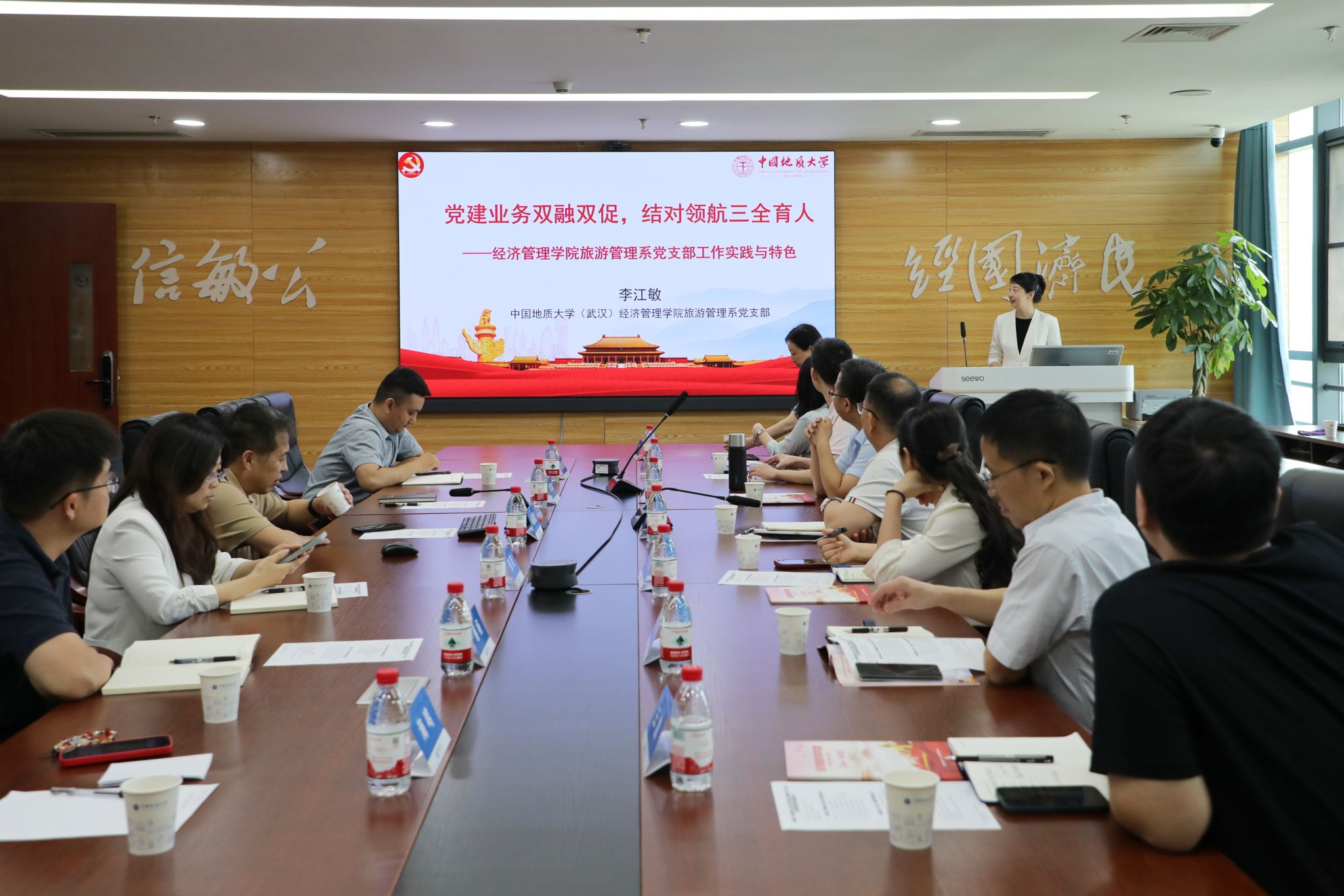 随后,beat365官网旅游管理系党支部书记李江敏教授作《党建业务双融双促,结对领航三全育人——经济管理学院旅游管理系党支部工作实践与特色》专题分享,结合党支部书记“强国行”实践经历,详细阐述了党支部在党建与业务融合、结对育人等方面的工作经验和特色做法。
