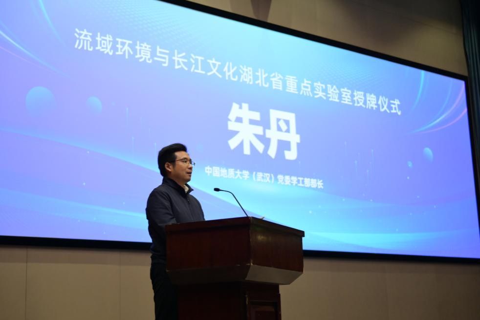 朱丹在致辞中表示,流域环境与长江文化湖北省重点实验室是自然科学与人文社会科学深度融合的典范,开创了学科融合、校地融合及科研平台建设的新范式。他指出,此次活动是学校以习近平生态文明思想铸魂育人,落实新时代高校“守护长江 培根铸魂”育人共同体行动指南的重要举措。作为以地质、资源、环境等学科为特色的高水平研究型大学,中国地质大学(武汉)始终主动担当服务长江经济带高质量发展的时代责任,我校牵头组建的“守护长江 培根铸魂”育人共同体兼具“扎根长江生态、践行立德树人”“深化产教融合、推动科教协同”“聚焦优质扩容、赋能绿色发展”“服务国家战略、培育时代新人”四重属性,通过构建校企社衔接、党团队联动、大中小一体的育人机制,既承载着守护母亲河的生态使命,更肩负着为教育强国建设输送高素质人才的时代重任。