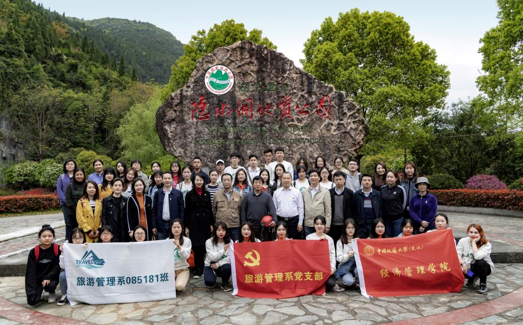 (通讯员 周玲,梁玥琳,李江敏)为深入贯彻习近平总书记精准扶贫精准脱贫的战略思想,学习和传承艰苦创业的革命精神,让旅游学子在典型案例与实践场景中认知旅游扶贫,了解旅游在乡村振兴中的作用和角色,学习旅游“铁人”精神,中国地质大学(武汉)经济管理学院旅游管理系党支部带领结对领航班级085181班学生,于2019年4月13日至湖北通山大畈镇隐水洞国家地质公园开展师生“结对领航”活动。