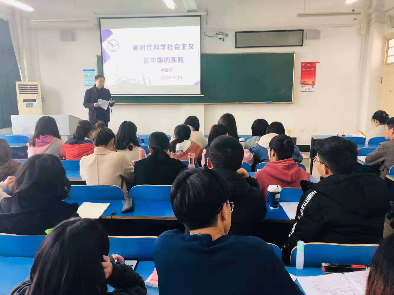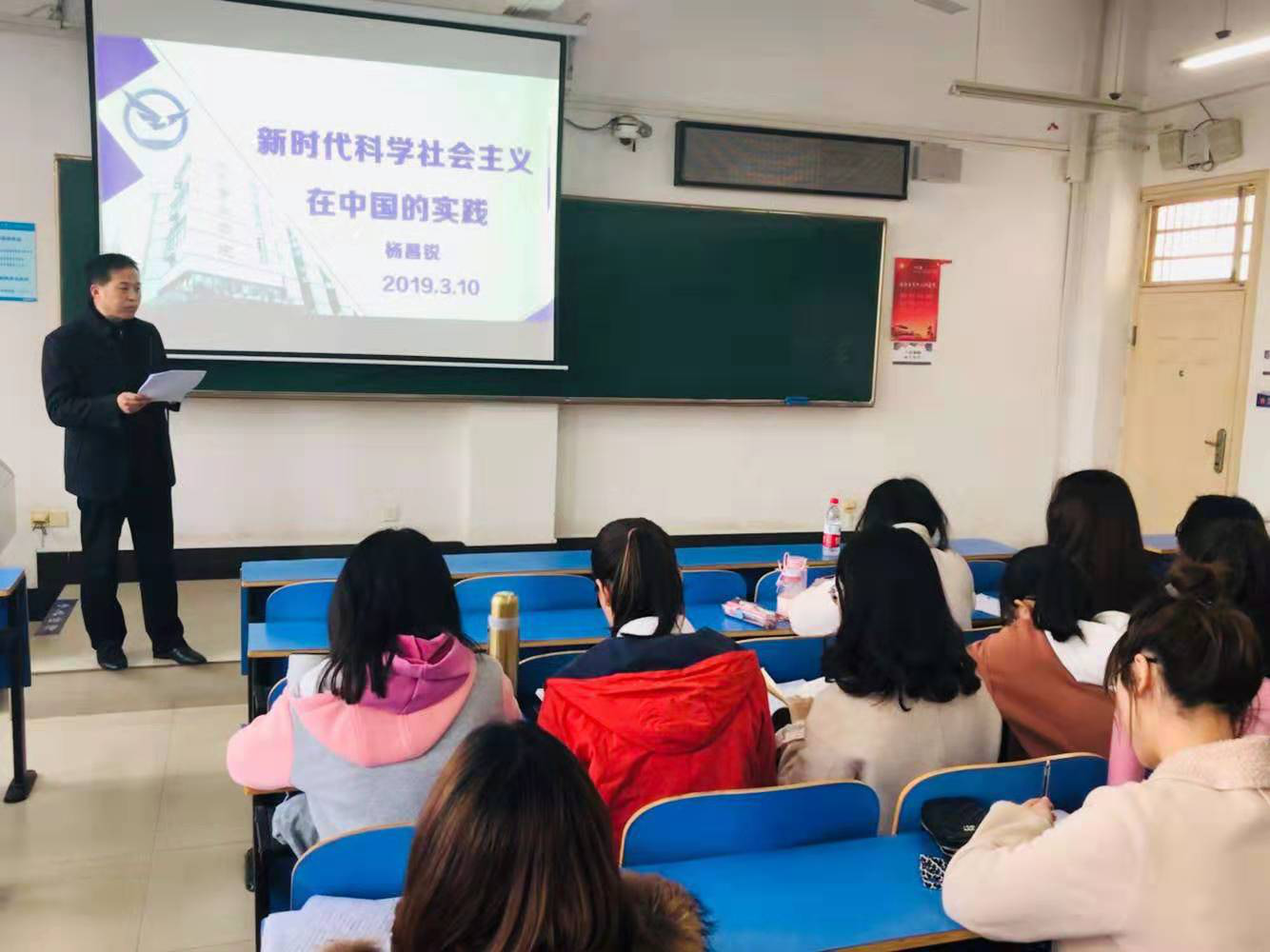2019年3月10日下午2点,经济管理学院第九期发展对象培训班课程在北区综合楼208教室如期举行,学院党委书记杨昌锐以“新时代科学社会主义在中国的实践”为主题为学员授课,30余名学生党员发展对象参加党课。