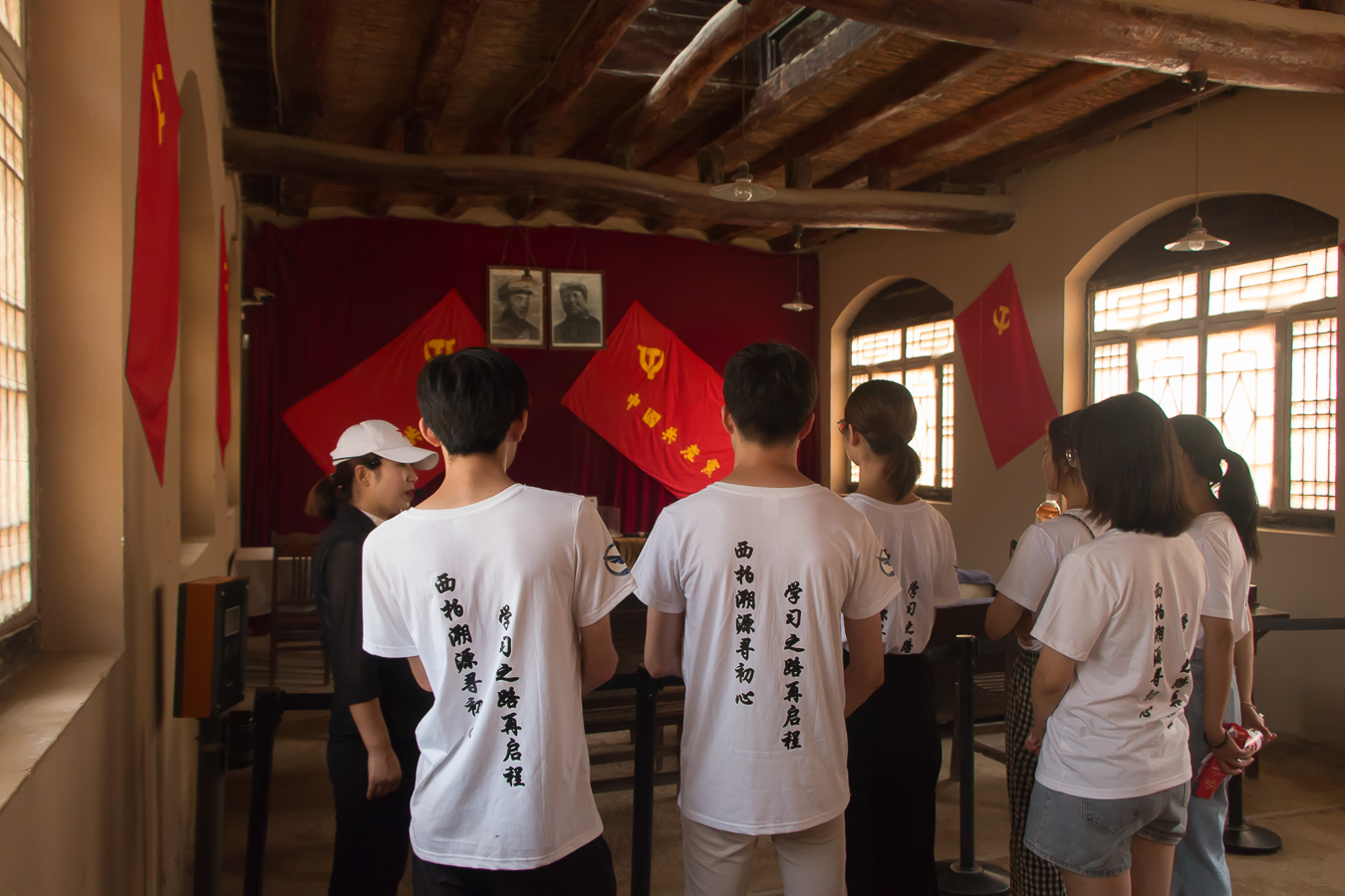 在中共中央旧址所在地,队员们参观了毛泽东、朱德、周恩来、刘少奇、董必武、任弼时等领导同志的故居以及七届二中全会会址,进一步了解了中国革命走向伟大胜利的历史进程。在七届二中全会会址门前,队员们面向党旗重温入党誓词,并合影留念。