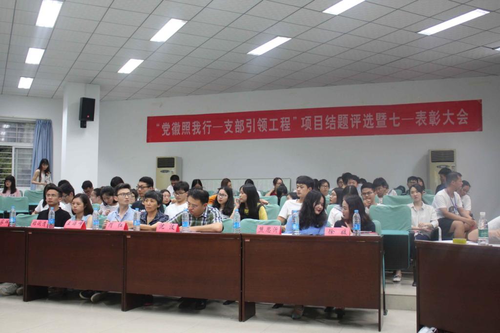 018年6月19日晚19:00,经济管理学院2017-2018年度“党徽照我行——支部引领工程”项目结题评选暨七一表彰大会在北一楼报告厅顺利召开。学院党委书记隋红书记,副书记沈波书记,学工组全体成员老师以及本科生党支部、研究生党支部、经管学生会主席团代表们参与了本次大会。