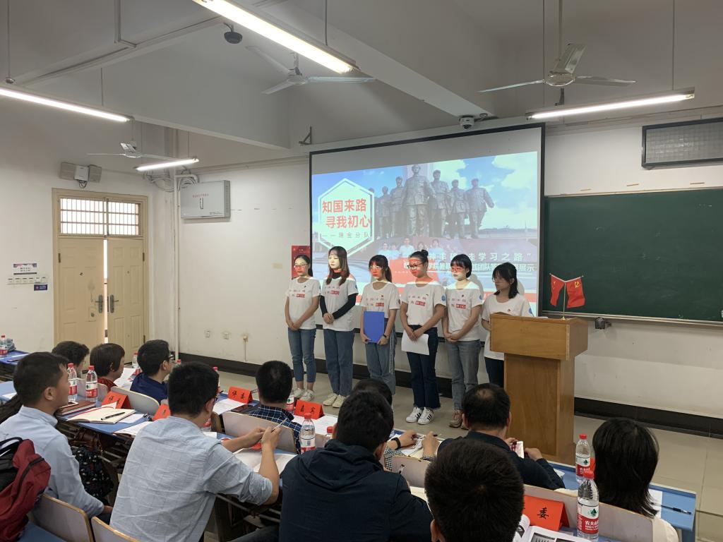 7支党员实践团围绕学习实践过程、成果以及宣讲思路进行展示汇报。其中,来自财管与会计专业本科生党支部的瑞金分队说道:来路,方能明去路;寻初心,才可担使命。中国共产党人的初心和使命从来都是在革命路上前赴后继,在创业路上栉风沐雨,在复兴路上实干兴邦。而我们,作为当代大学生,是时代之子,是国之栋梁,只有和党和国家同心同向,将小我融入大我,以我之口颂我之党、赞我之国、讲我践悟。”