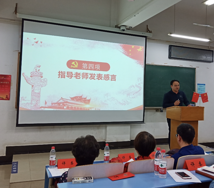 马克思主义学院吴东华教授从宣讲的逻辑思路、核心内容、主题立意三个方面对实践团进行指导点评,鼓励广大学生党员时刻牢记党员身份,立场鲜明讲政治,奋发有为勇担当,真正做到“在党爱党、在党言党”,始终牢记中国特色社会主义接班人和建设者的伟大历史使命