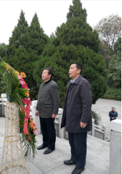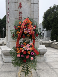 10月26日八时,学习小组从中国地质大学(武汉)南望山校区化石林出发,10:20抵达鄂豫皖苏区首府烈士陵园。受邀出席本次活动的学院党委书记杨昌锐同志和院党委委员、学院院长杨树旺同志代表党支部向革命烈士纪念碑整理、敬献花篮,带领大家向革命烈士纪念碑三鞠躬,深切缅怀为中国革命事业英勇捐躯的革命先烈。