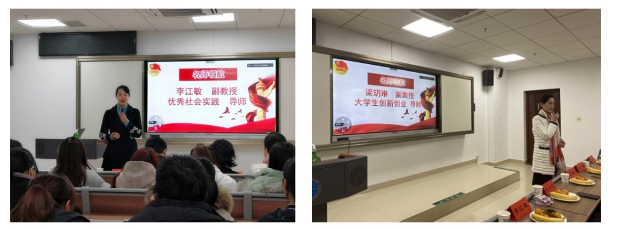 随后,校社会实践优秀指导教师、旅游管理系党支部书记李江敏副教授以其指导的世界文化遗产项目的社会实践和调查活动为例,指导并鼓励同学们注重思考、从细节中发掘选题,持之以久地坚持探索和学习;2019国家级大学生创新创业项目指导教师、校“优秀班主任”和“优秀学务指导教师”梁玥琳老师结合其指导的085181班同学的各项创新实践活动,介绍了选题、参与创新创业的能力要求和提升方法,让大家感受到创新创业其实并没有那么高不可攀。